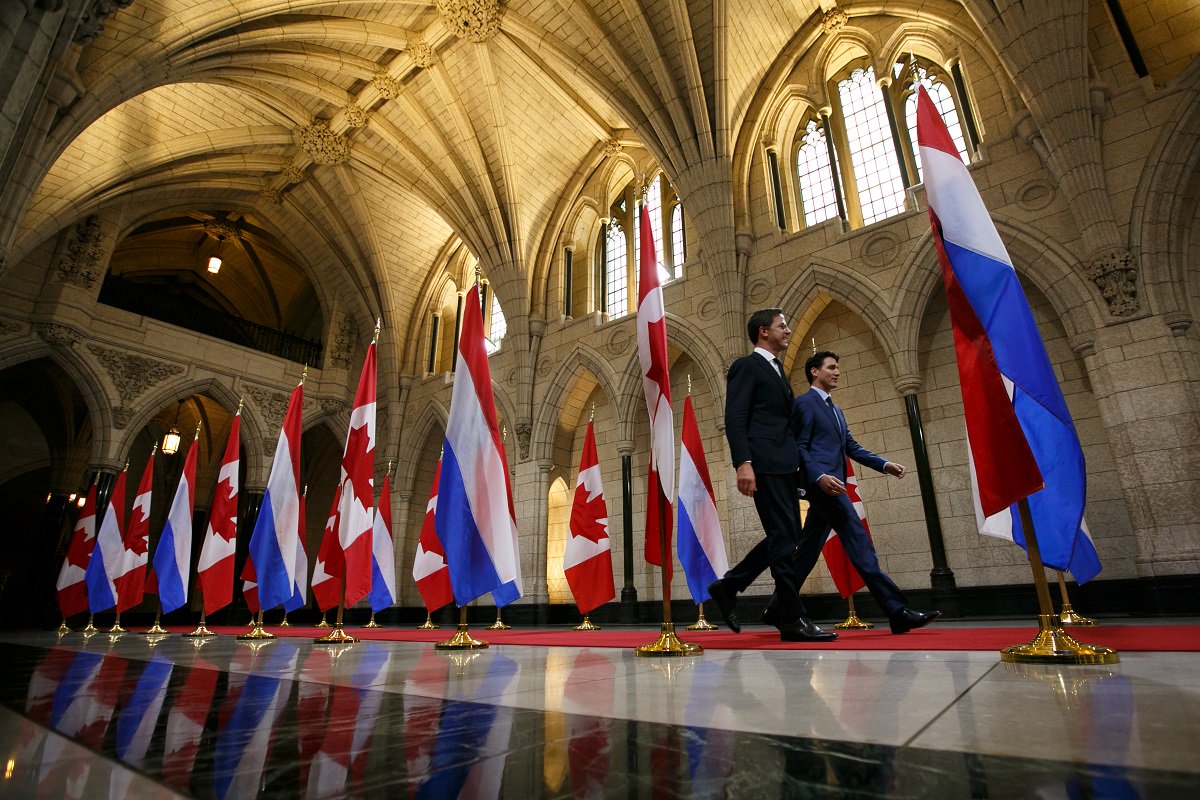 Le premier ministre Justin Trudeau et le premier ministre des Pays-Bas, Mark Rutte, traversent le Hall d’honneur sur la Colline du Parlement à Ottawa.pic.twitter.com/Q2ZohS74os
