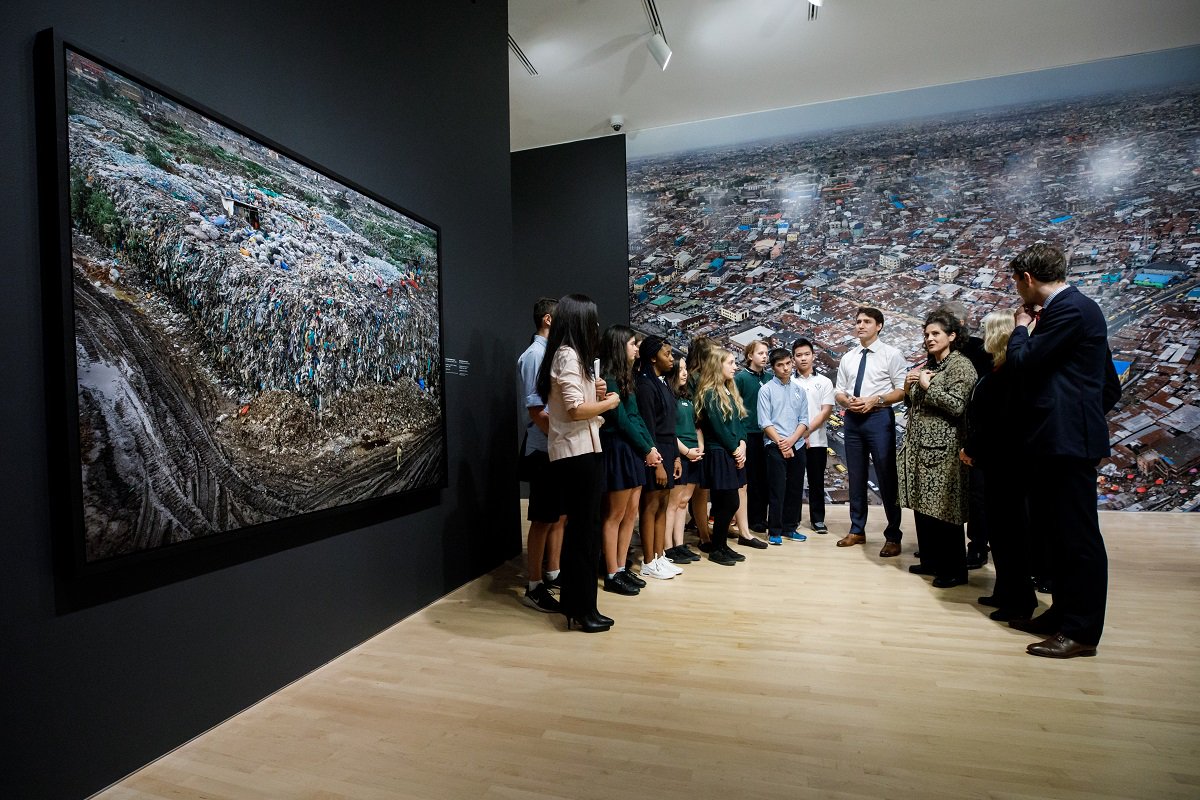 Aujourd’hui, à Ottawa, le premier ministre Justin Trudeau et la ministre Catherine McKenna ont visité l’exposition #Anthropocène au Musée des beaux-arts du Canada avec les artistes Jennifer Baichwal, @EdwardBurtynsky et @NickdePencier.pic.twitter.com/woNJ6ZmOYq