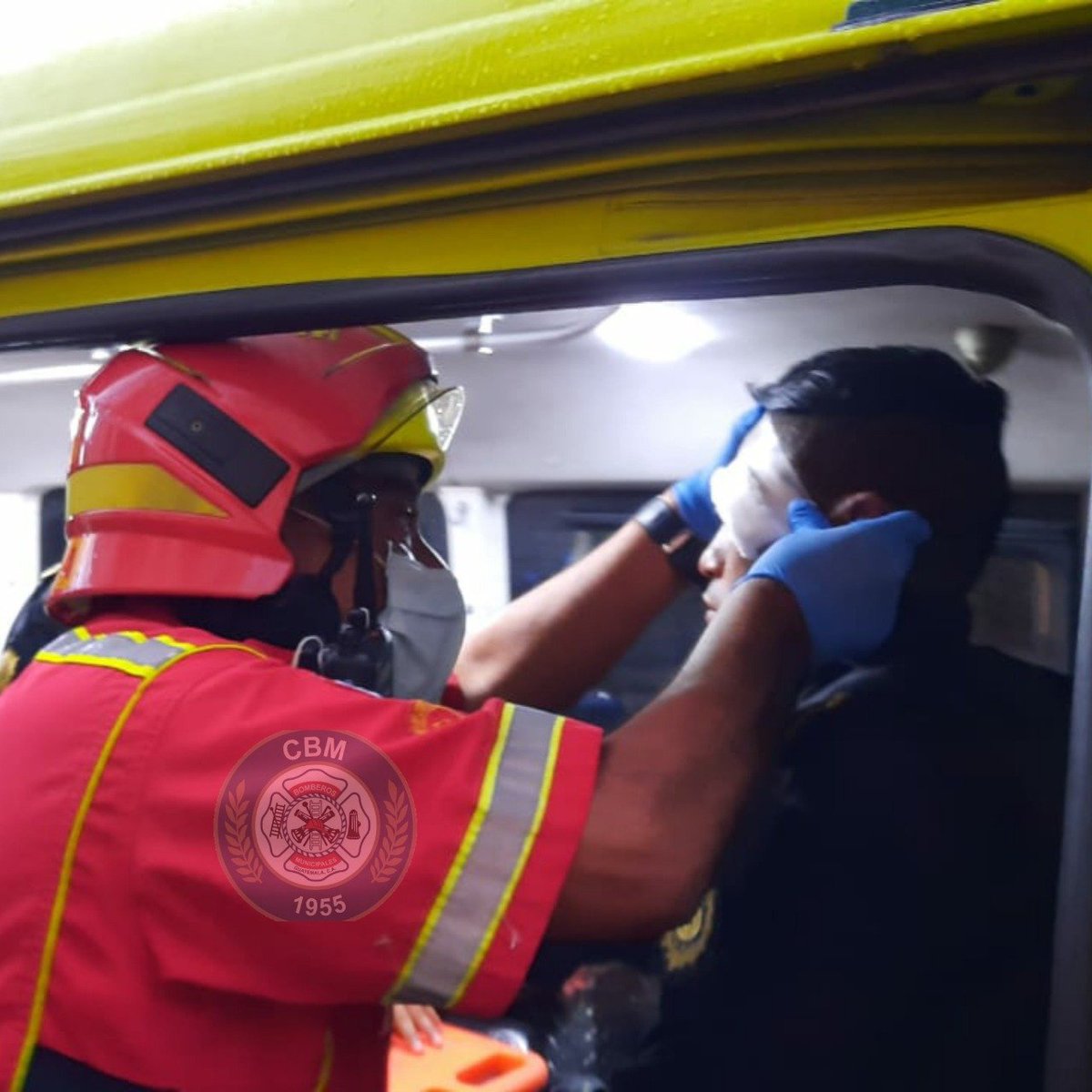 Dos agentes de policía más resultan golpeados por manifestantes violentos, mientras se encontraban en la 9ª avenida y 9ª calle de la zona 1, Bomberos Municipales los auxiliaron y trasladaron a un centro asistencial. Entre ellos una mujer.pic.twitter.com/38klhGhsM3