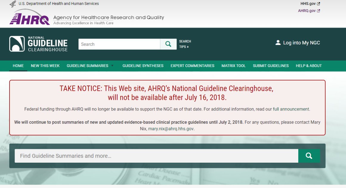 AHRQ is shuttering its website with medical practice guidelines. The story from @ArthurAllen202: https://bit.ly/2KZ7KCF | Photo: Screengrab via AHRQpic.twitter.com/HnHOvJXmin