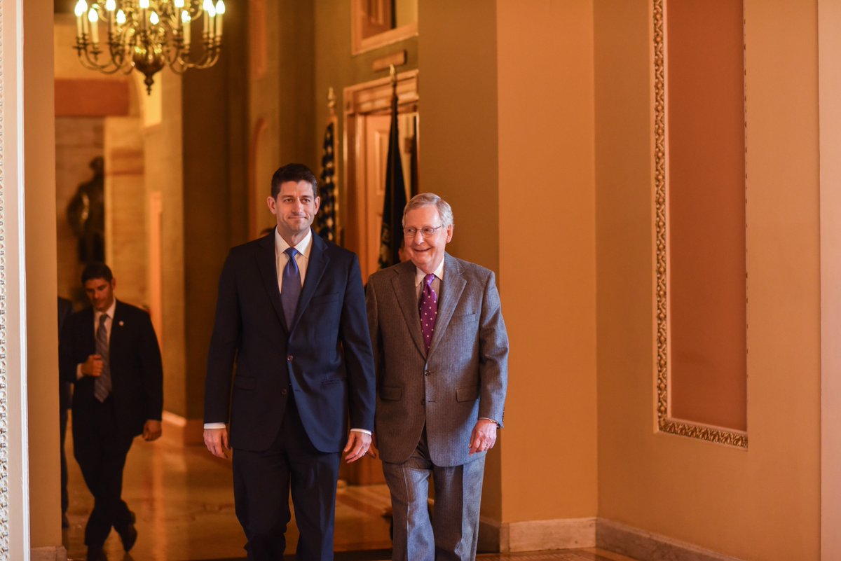 .@SpeakerRyan and @SenateMajLdr walk into a Senate Republican policy luncheon. | Photo: @jnshinklepic.twitter.com/xGfae6CtLN