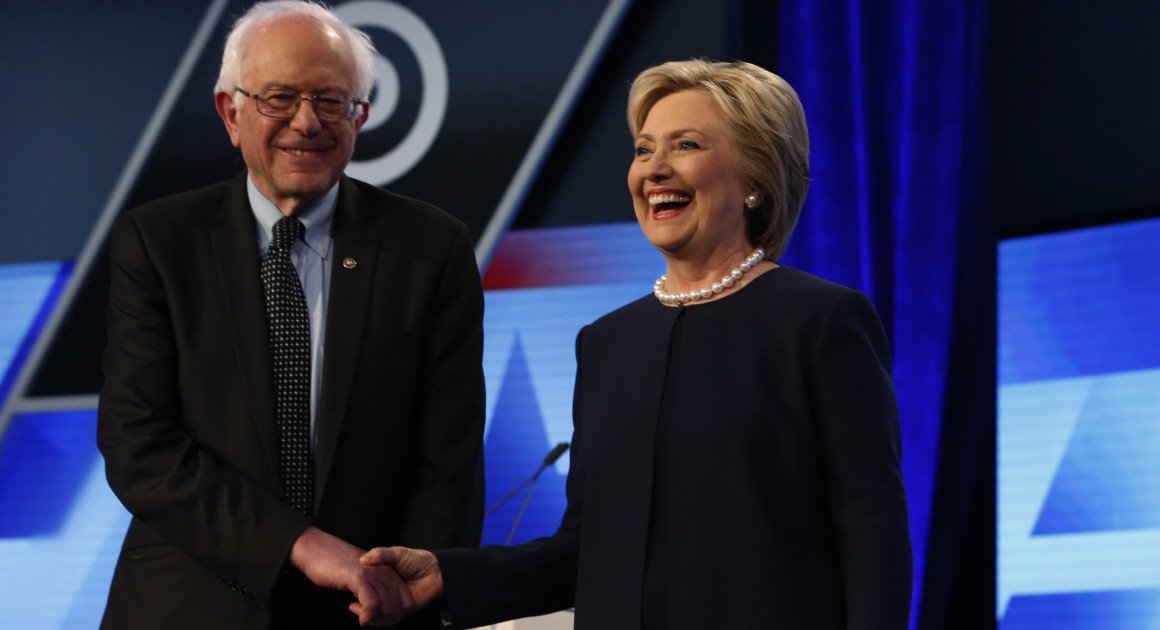 .@HillaryClinton and @BernieSanders shake hands prior to the #DemDebate in Miami tonight. | Photo: APpic.twitter.com/6ch4Susy9k
