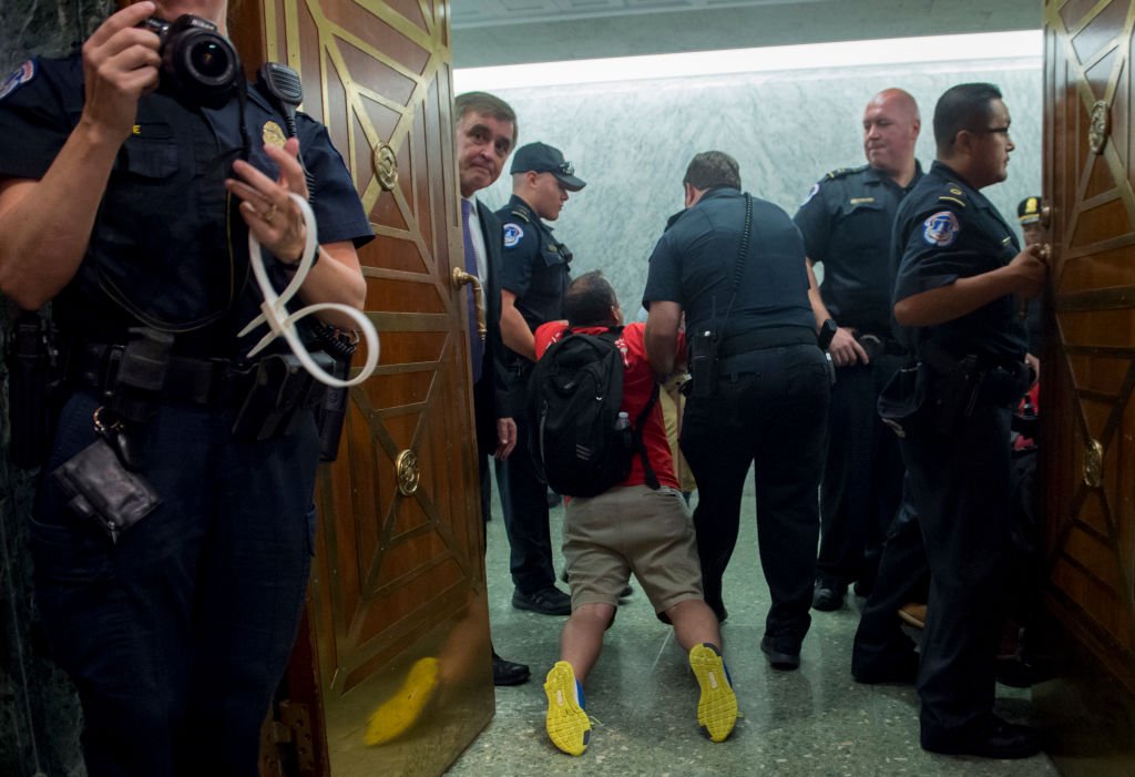 Protesters dragged out of Senate hearing on #Obamacare repeal. The latest from @adamcancryn: http://politico.pro/2wgrgPJ | Photo: Gettypic.twitter.com/rjgaeaN4wF