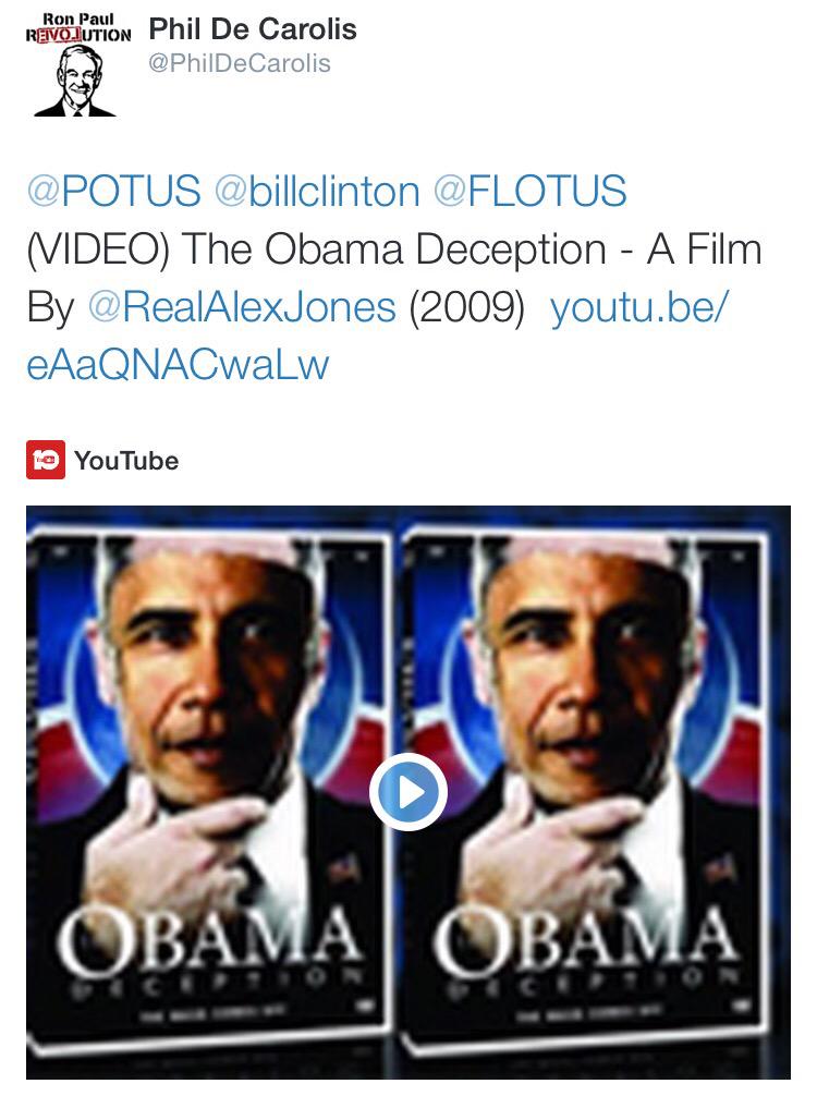 @POTUS Obama Deception reply 40,154 impressions in 2 hrs,16 hrs later only at 40,605. Why? http://youtu.be/eAaQNACwaLw pic.twitter.com/tzqjnEsBZy