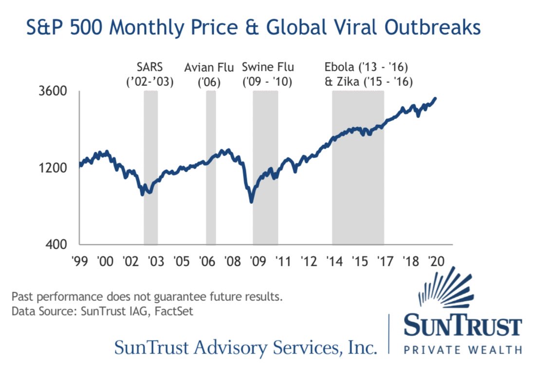 S&P Performance through prior, viral outbreaks, via SunTrust: