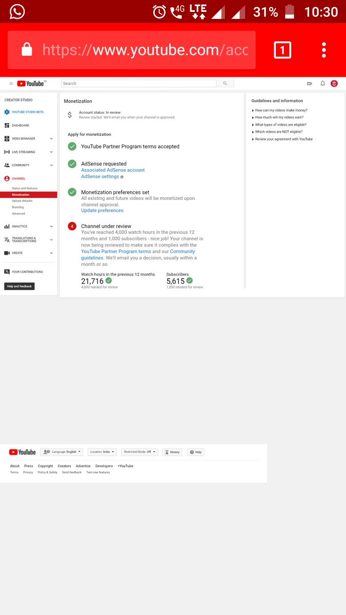 @TeamYouTube hello sir, im sohail ahmed from india. my youtube channel ( ALL IN ONE ) https://www.youtube.com/channel/UCZsiCqw5W2WhMys8fuFmJwQ … i have 21000+ watchtime hours and 5520+ subscribers and 55000+ views.but still my monetization was not http://enable.im  waiting sins 2 month. please enable.