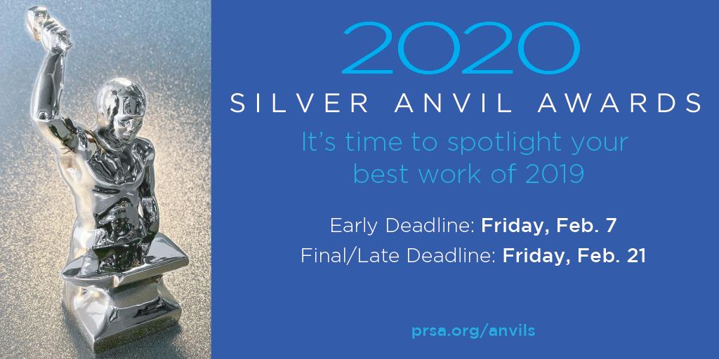 There are ONLY 4 days left to submit your entries into the 2020 Silver Anvil Awards program AND save $200! Join the ranks of industry leaders and enter your best work from 2019 today>> https://bit.ly/38edbFh pic.twitter.com/VVLZFRe0In
