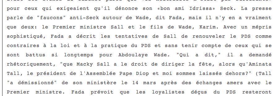 Voilà ce qu'aurait dit Modou Diagne Fada lorsque @Macky_Sall était Premier Ministre. #Kebetu #transhumance #Sen Source : @wikileaks https://wikileaks.org/plusd/cables/06DAKAR681_a.html …pic.twitter.com/Nqe1xakBYL