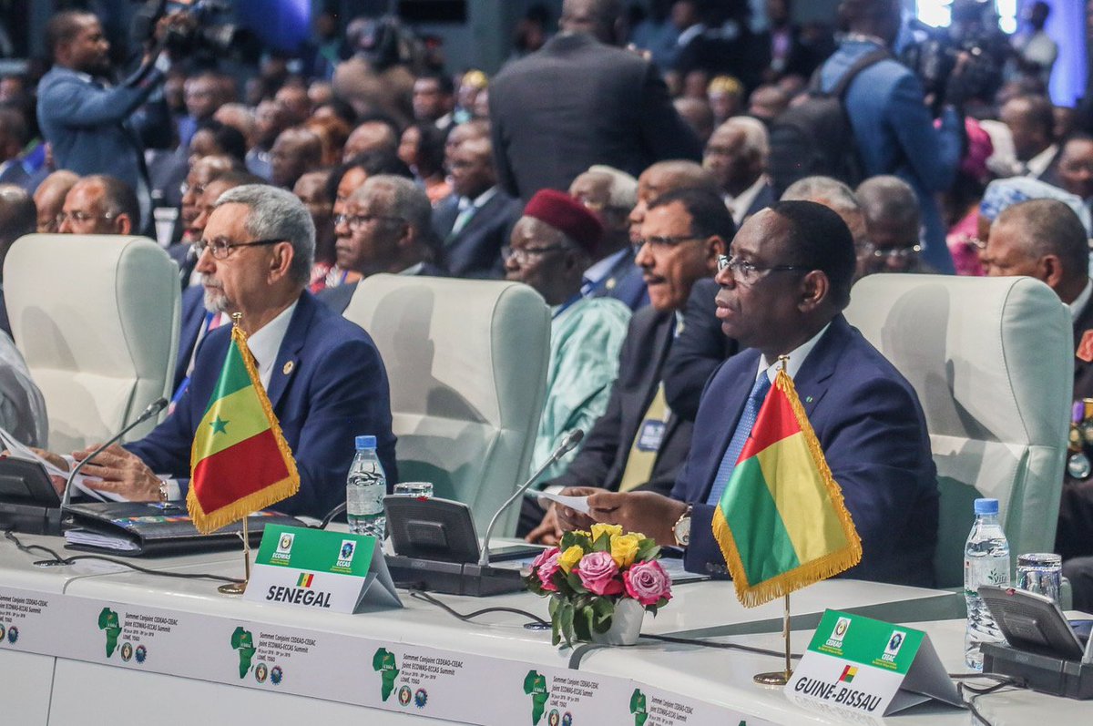 Dans le cadre du sommet conjoint CEDEAO / CEEAC, le Président @Macky_Sall prend part à une rencontre dédiée à la paix et la sécurité. Les chefs d'État de la CEDEAO souhaitent adopter une position commune avec leurs homologues d’Afrique centrale en la matière. #kebetu