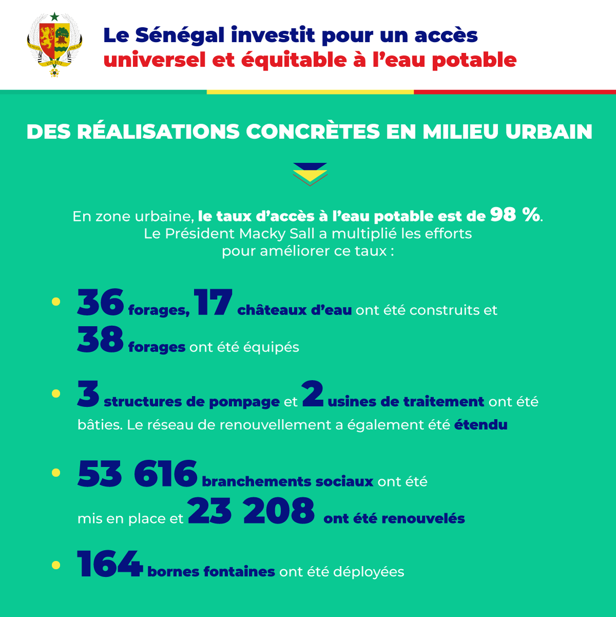 Le président Macky fait beaucoup d'effort allant dans ce secteur.Depuis 2012 jusqu'à présent il à soulagé plusieurs villes et villages de ce problèmes d'eau qui devait être régler au temps de PS ( partie socialiste ). Merci sem Mr Macky
