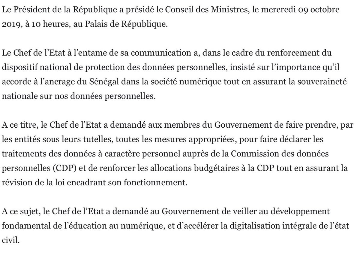 Le Communiqué du Conseil des ministres du mercredi 9 octobre 2019 👇🏿 https://bit.ly/2M2CQZd pic.twitter.com/ux4gs67R80