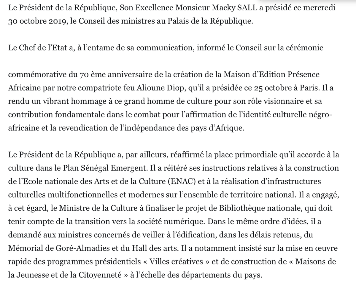 Le communiqué du Conseil des ministres de ce mercredi 30 octobre 2019
