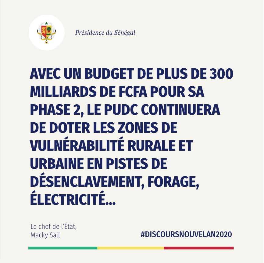 .@macky_sall : "Nos instruments de solidarité, de justice sociale et d’équité territoriale seront aussi renforcés." #DiscoursNouvelAn2020pic.twitter.com/7OUxOgI4jI