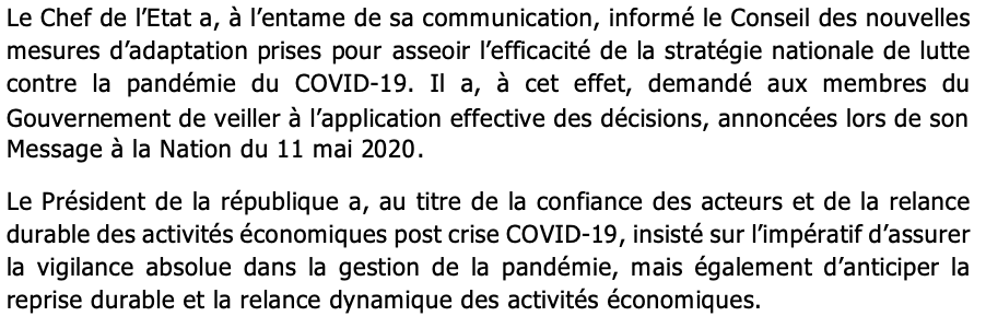 Le président @Macky_Sall a mené cette guerre contre le coronavirus de la plus belle des manières. Il a épargné les entreprises d’une banqueroute et les salariés d’un chômage technique. Les autres entités de la république ont également été prises en compte dans le PRES... bravo