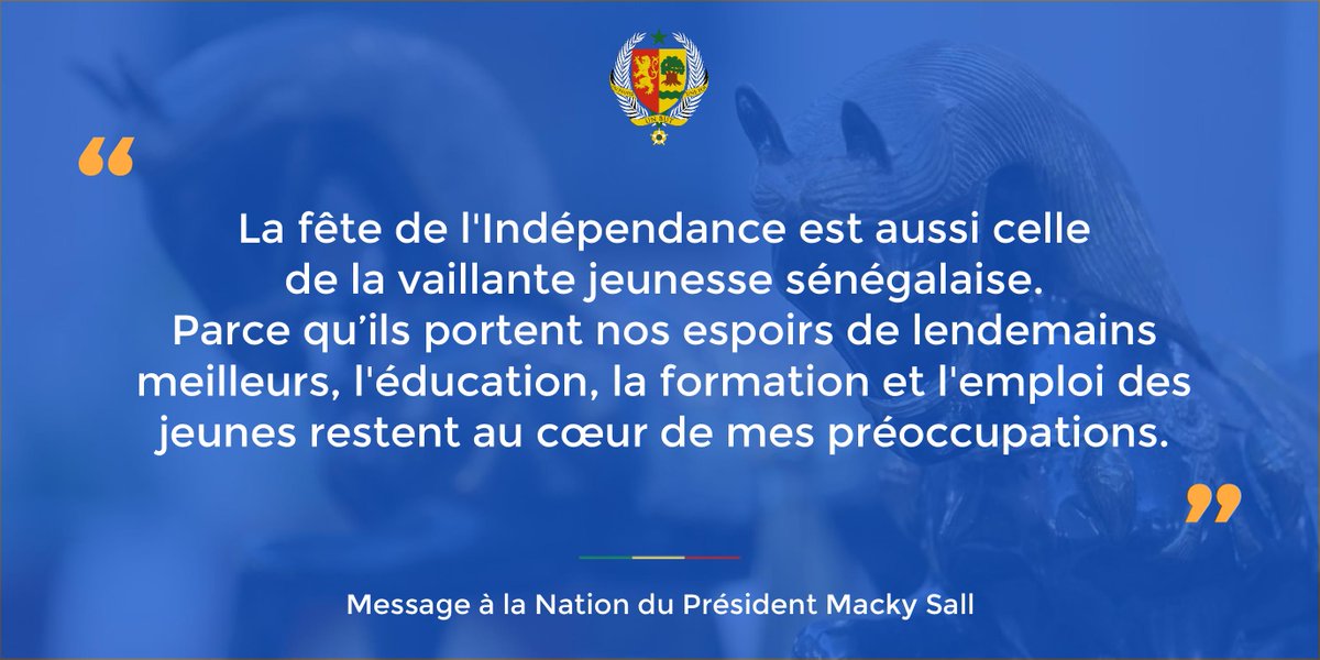 Extrait n°3 du message à la Nation de @Macky_Sall : http://bit.ly/1MNnAeS #SenegalIndependenceDay #kebetupic.twitter.com/QUwWmmbIfK