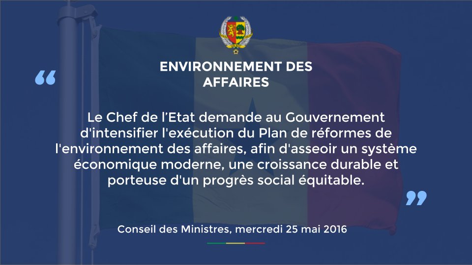 Extrait du Conseil des Ministres du 25 mai 2016 : http://ow.ly/tjd2300Bv2u #kebetu #Sénégalpic.twitter.com/agLXbimfzv