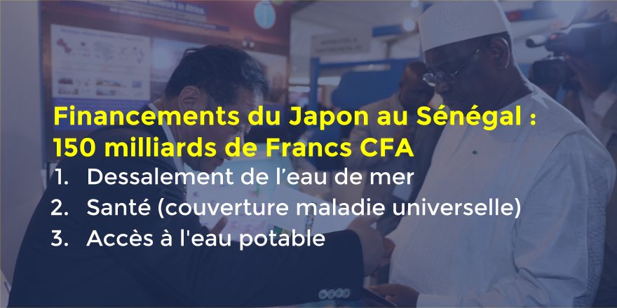 Les financements cumulés du #Japon au #Sénégal s'élèvent à hauteur de 150 milliards de francs CFA.pic.twitter.com/ekNWIYRvJ1
