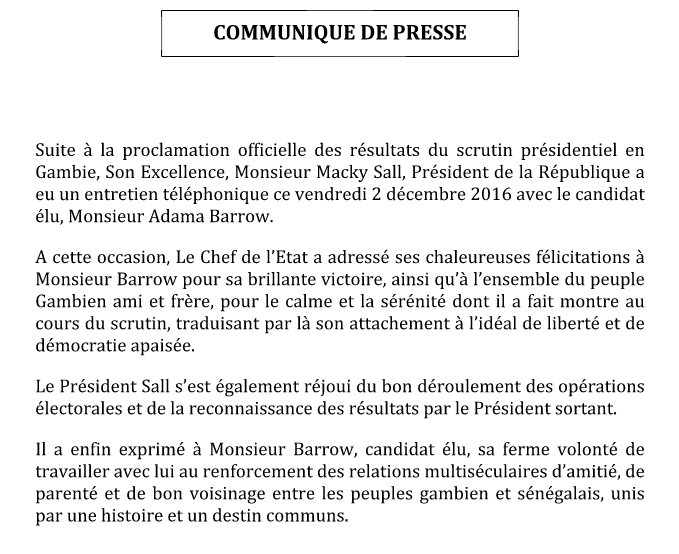 Présidence Sénégal‏Verified account @PR_Senegal 3 Dec 2016
