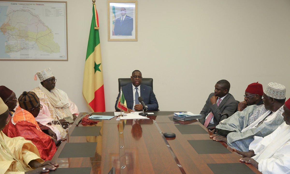 Le Président a reçu la communauté Lébou dirigée par le Grand Serigne de Dakar, qui l'a félicité sur la gestion de la crise en #Gambie.pic.twitter.com/XPzCLWyiOK