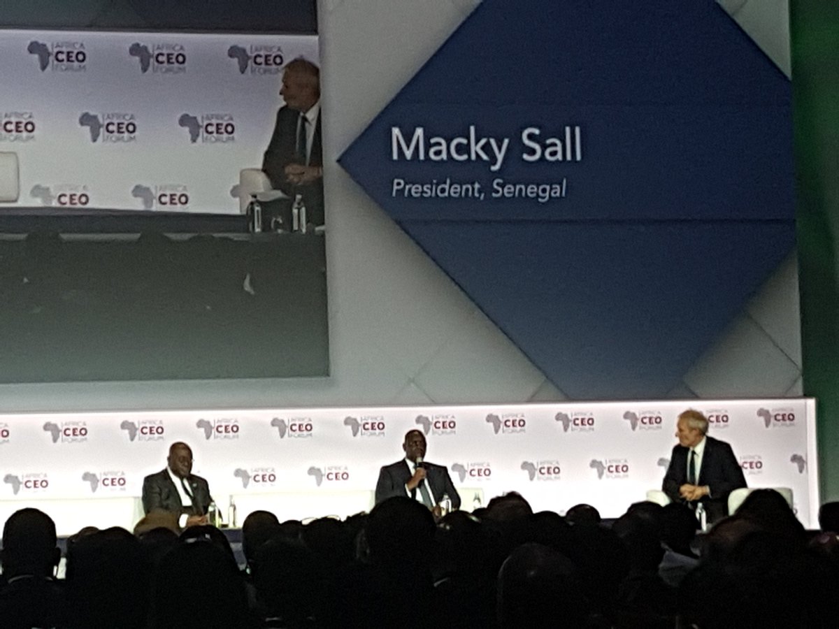 "Je remercie les organisateurs et salue les CEO, sans qui il n'y a pas de croissance en Afrique", PR @Macky_Sall 👉🏿 http://ow.ly/6d1x30a79ja pic.twitter.com/dJer0gIQ9n