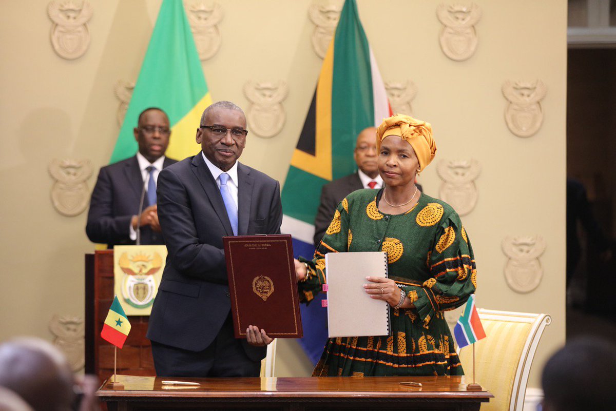 Des Mémorandums ont été signés par les Ministres des affaires étrangères ainsi que du tourisme du #Sénégal et de l'#AfriqueduSud 🇿🇦🇸🇳pic.twitter.com/TbashhYtWH