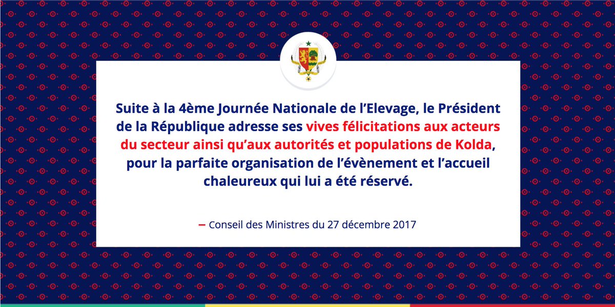 Présidence Sénégal‏Verified account @PR_Senegal 29 Dec 2017
