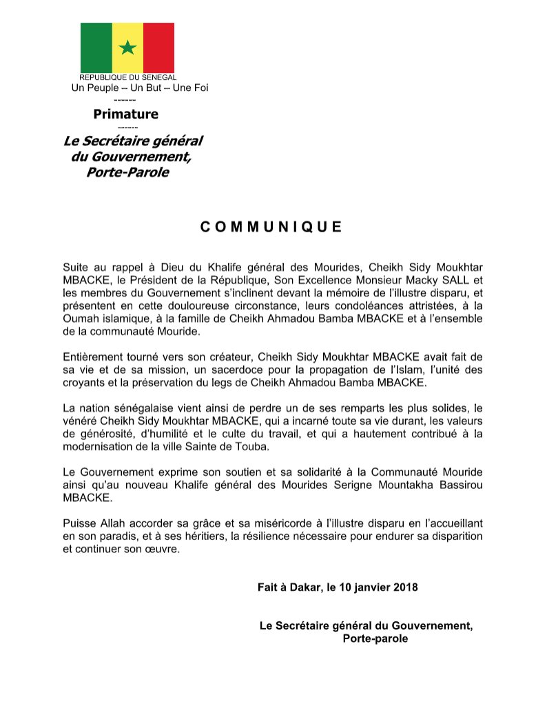 Le SÉNÉGAL a perdu un saint homme pétri de valeurs imbues. Nous compatissons et transmettons toutes nos condoléances à la ouma islamique et lui souhaitons un bon repos paradisiaque.