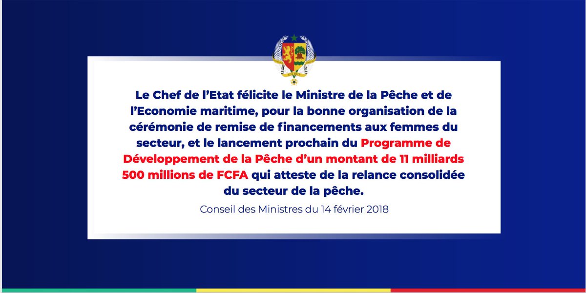 // Programme de Développement de la Pêche d’un montant de 11 milliards 500 millions de FCFA//