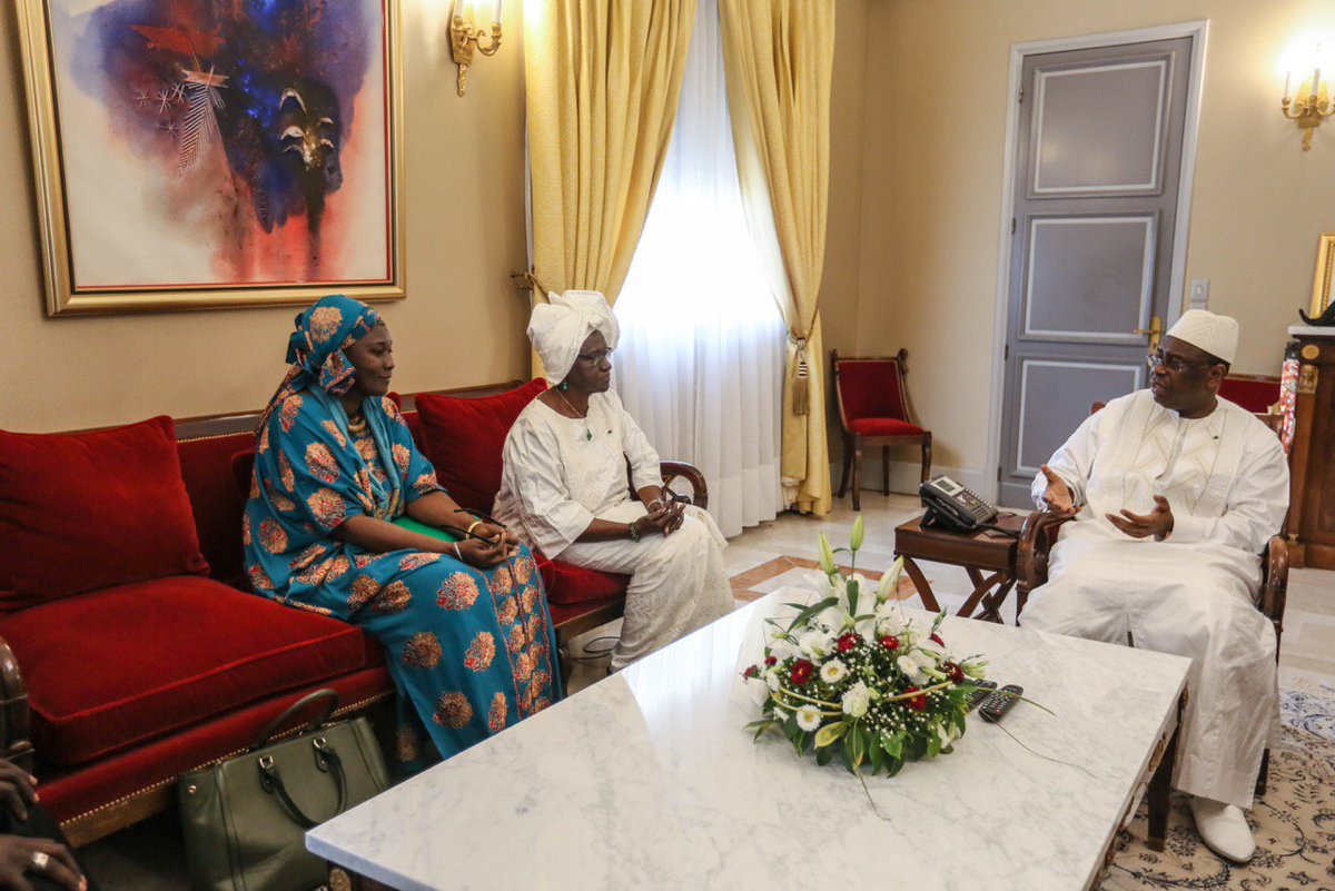 Le Président @Macky_Sall a reçu les responsables des centre Talibou Dabo et Village SOS, venus le remercier pour son don de 50 millions FCFA. Le Président leur avait reversé l'enveloppe du prix Leadership & Gouvernance que la Fédération pour la Paix Universelle lui avait décerné.pic.twitter.com/nyyBIUsbKr