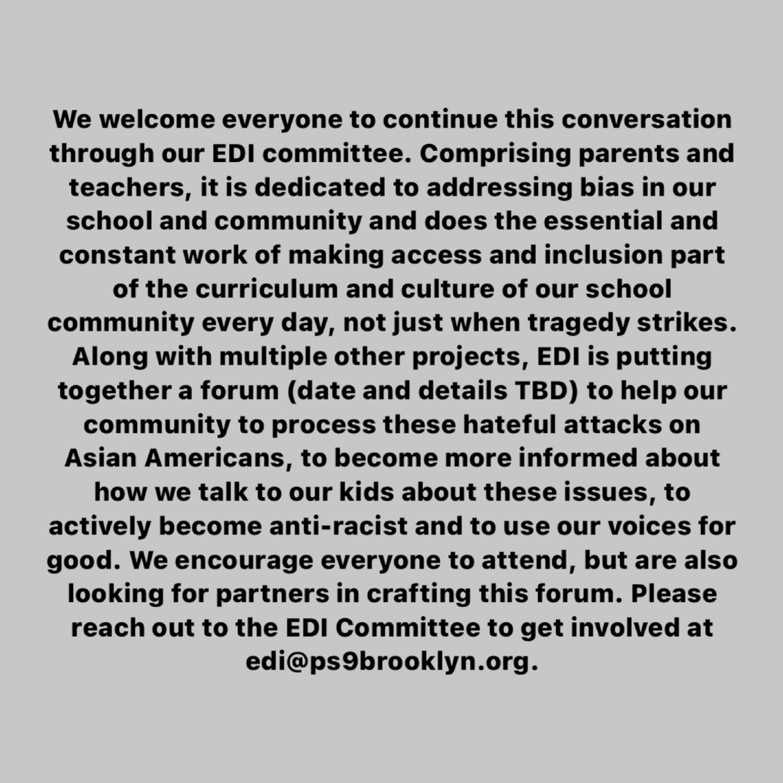 Thank you to our parents, step-parents, grandparents, caregivers and everyone who plays a part in caring for our children. You are quite literally all of us, we are all the PS 9 PTO, and we couldn't do what we do without you.