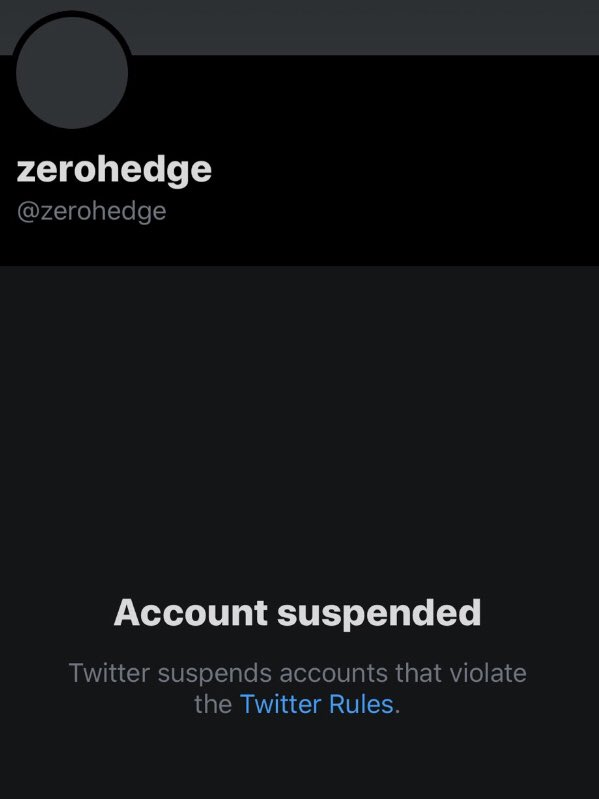 Zerohedge was suspended for something else, I think. For made up stuff about Chinese scientists who had stolen the #coronarvirus from some Canadian university