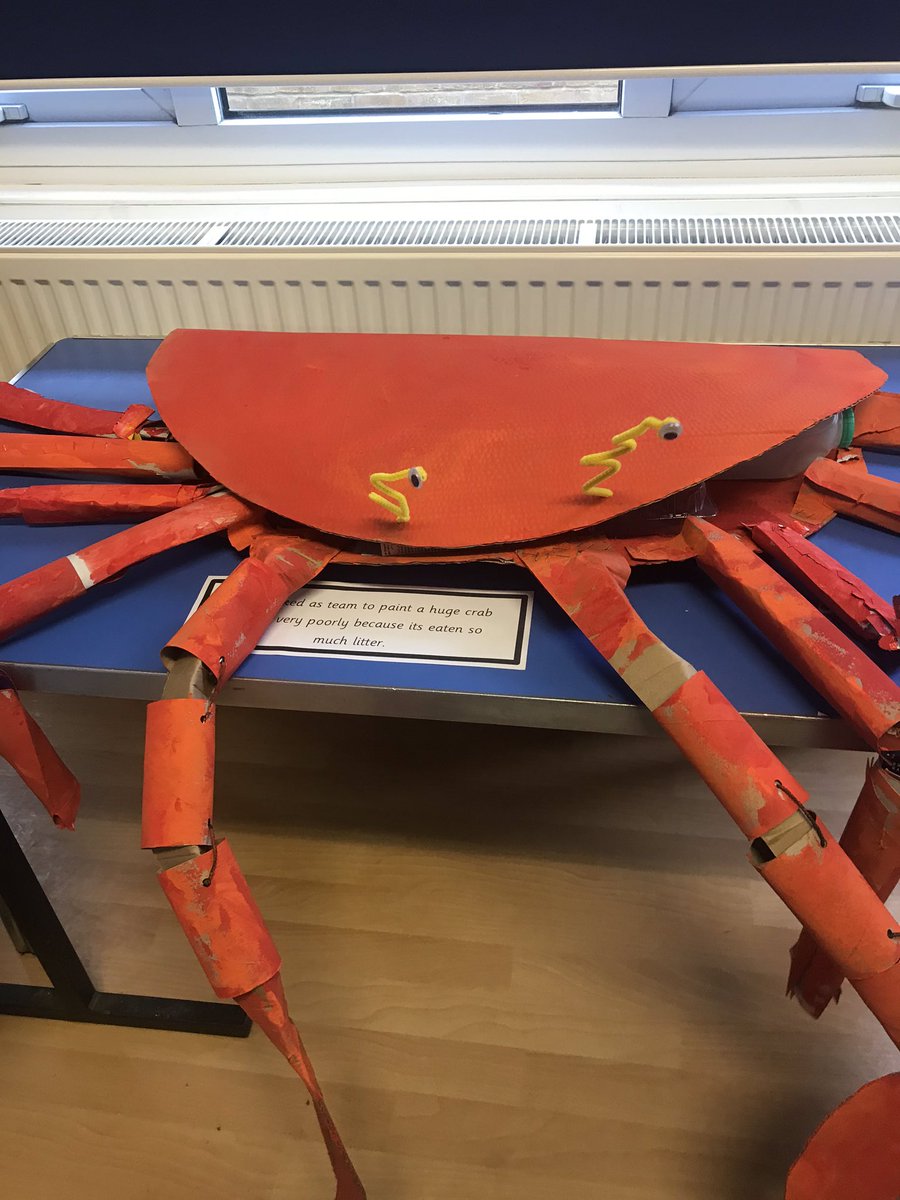 My oldest son’s class made a giant crab. “What part did you help make Rory?” “His smile”