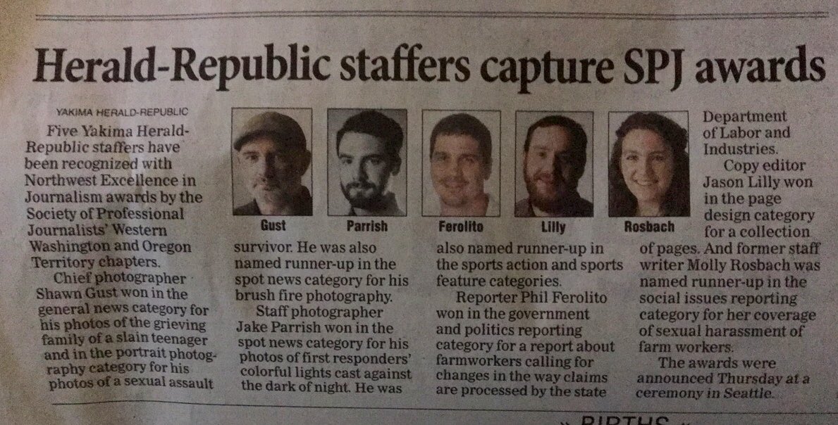 @SPJWash Northwest Excellence in Journalism award winners yesterday. Congrats to@JakobParrish,@PhilipFerolito, Shawn Gust (a double winner) and Jason Lilly!#journalism#Yakima#PNWhttps://twitter.com/SPJWash/status/1010198844947169280 …