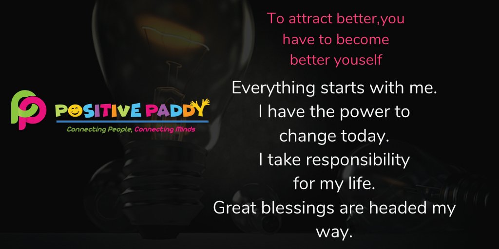 To attract better, you have to become better yourself Everything starts with me. I have the power to change today. I take responsibility for my life. Great blessings are headed my way.