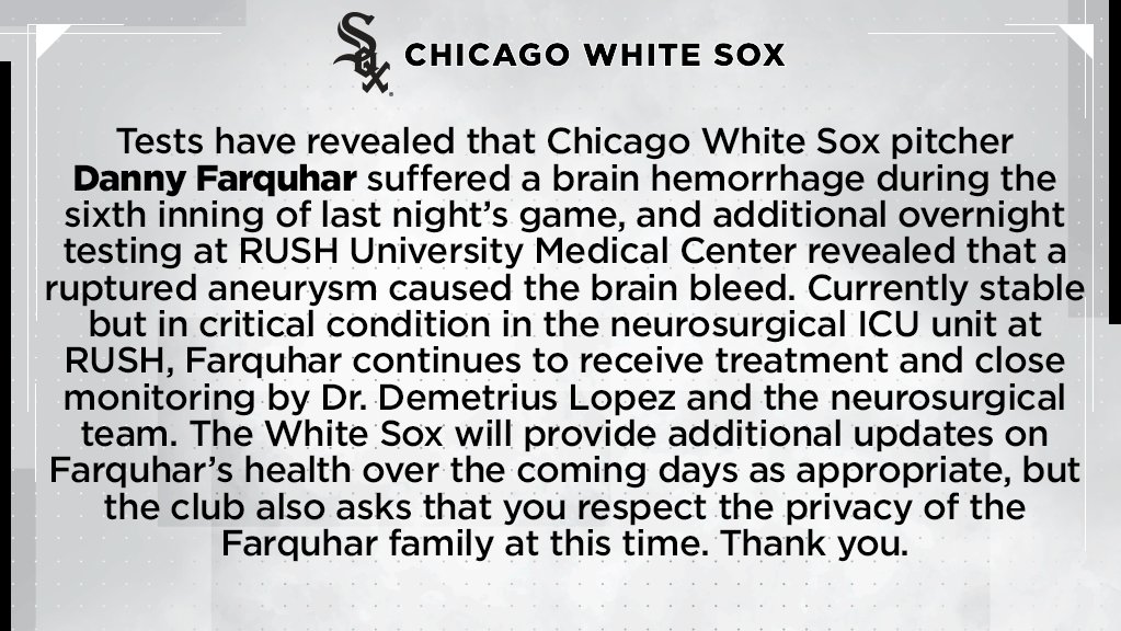 Our thoughts are with the Farquhar family and the White Sox organization. Get well soon, Danny.https://twitter.com/whitesox/status/987777785656676352 …