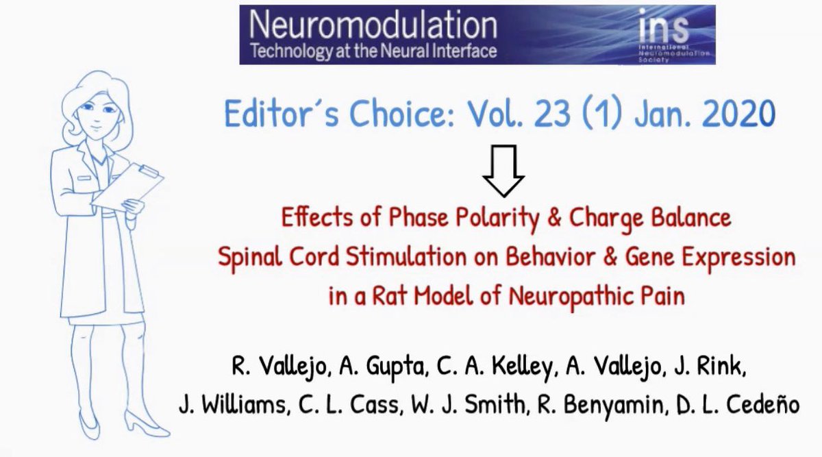 "Effects of Phase Polarity & Charge Balance Spinal Cord Stimulation on Behavior & Gene Expression in a Rat Model of Neuropathic Pain" by Vallejo et al.