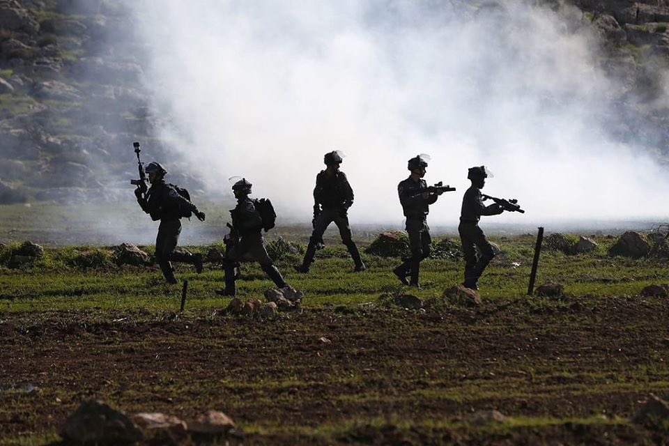 Israeli occupation forces fire teargas canister at hundreds of protesters taking part in the nonviolent