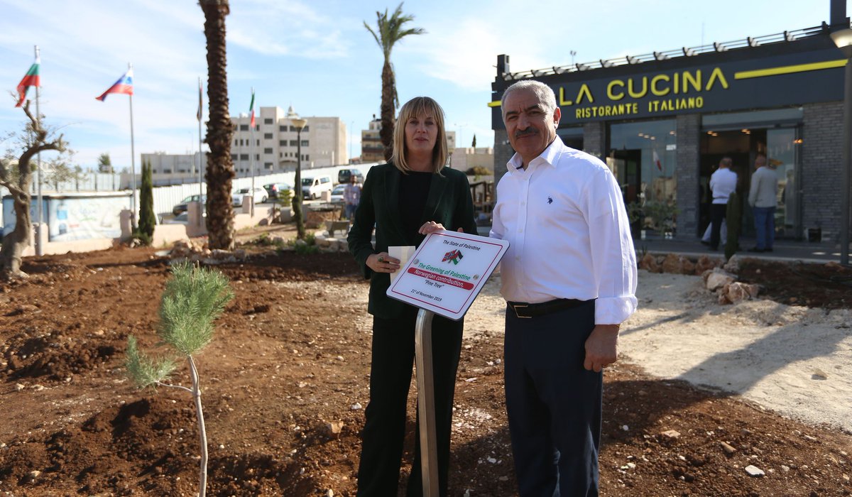 PM Shtayyeh participated in the Agricultural Day & inauguration of the International Garden, northeast of Alistiqlal Park in Ramallah & Al-Bireh, in the presence of Palestinian ministers & int'l ambassadors & consuls in Palestine who planted trees holding their countries namespic.twitter.com/gJjxVl00oS