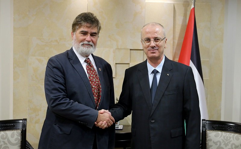 The Prime Minister @RamiHamdalla received the Canadian representative to #Palestine, Mr. Douglas Scott Proudfoot, and briefed him on the latest political developments and the continues Isreali violations against our people.