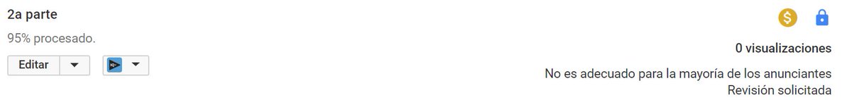 Jejeje ni se ha terminado de subir la segunda parte del video de hoy, y ya está youtube demonetizandomela, espero que no se vengan malos tiempos de nuevo :/pic.twitter.com/G4eHJeGTnx