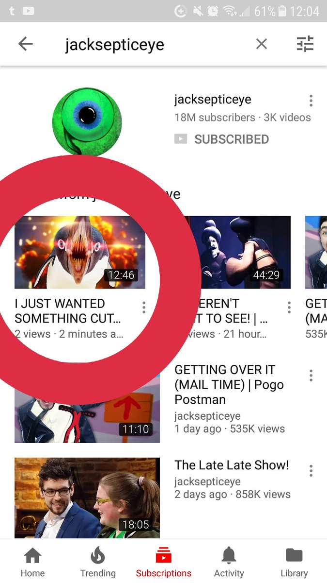 @TeamYouTube its happening again. @Jack_Septic_Eye's new video isnt in my sub feed, appears when you search his channel, but doesnt appear under videos??? I swear i took them one after another, not his channel first then the search resultspic.twitter.com/CuQten4xhQ