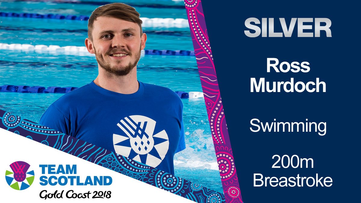 @RossMurdoch_ puts in a superb swim in the 200m Breaststroke, just pipped on the touch for gold!#TeamScot2018#GC2018Swimming