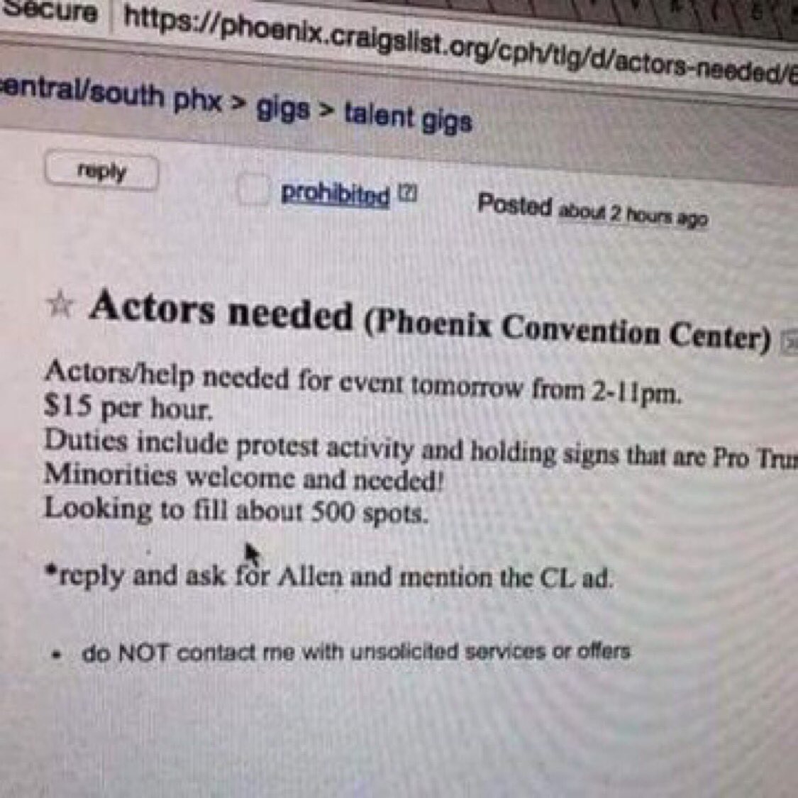 Found some proof of Trump or aides hiring Actors to fill a rally! It paid $15/hr to hold signs & cheer for Trump! LMFAO!