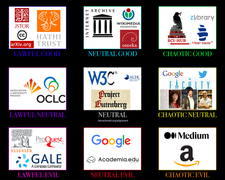 OK, we've made it through peer review: here's the final version of the great scholarly-communications-and-access alignment chart. http://benschmidt.org/post/2021-05-20-alignment/ …pic.twitter.com/nO9HX51RAk