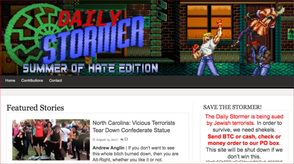 White supremacist site Daily Stormer now has a dark net site after getting kicked off the clear net. https://news.vice.com/story/neo-nazi-site-the-daily-stormer-moves-to-the-darkweb-but-promises-a-comeback …pic.twitter.com/f8IPvhjNIg