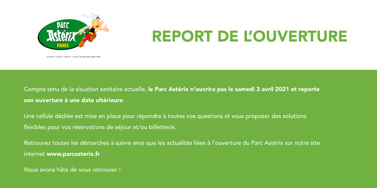 [OUVERTURE] Chers Gaulois, le Parc Astérix ouvrira ses portes le mercredi 9 juin 2021 ! Pour préparer votre venue, nous vous invitons à consulter notre site internet : http://www.parcasterix.fr (1/2)pic.twitter.com/eURpxCdbCO