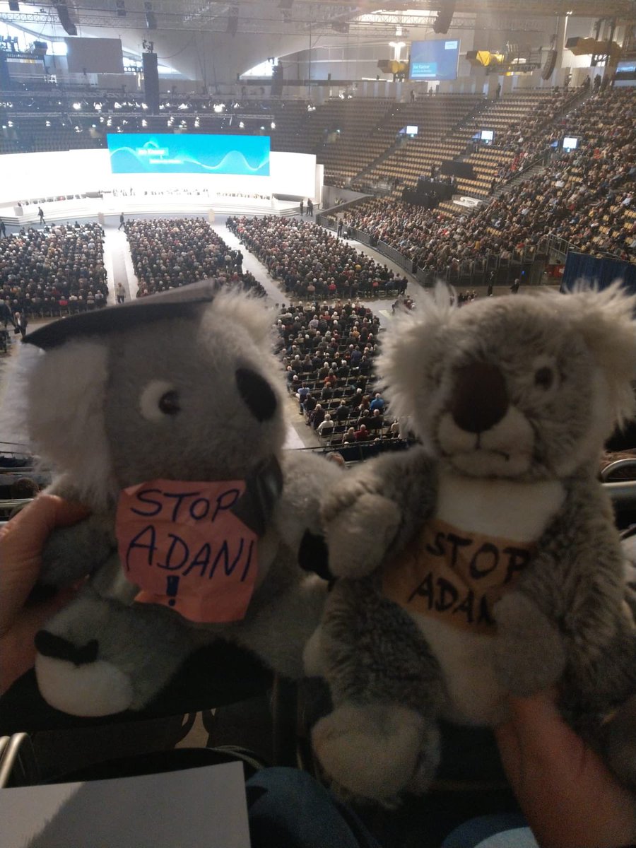 @JoeKaeser . Wir hören hier in der Hauptversammlung schon 100 mal das Wort Nachhaltigkeit, aber der Adani Deal steht in einem offensichtlichen Widerspruch zu diesem wichtigen Unternehmensziel.#StopAdani#Siemens#parentsforfuture#Koalas#australia#hauptversammlungpic.twitter.com/Bmxs1MielP