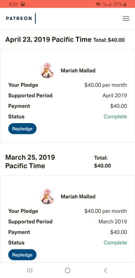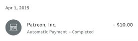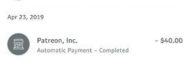Proof of my payments. Usually I pledge $10. That was my initial. Got back. Depending on the month, I decided to up for more content if she creator is doing something Im interested in. So I bump up, make sure my PAYMENT GOES THROUGH [always does], ad then go back down before EotM.pic.twitter.com/ekihnpdDIL