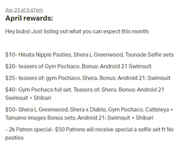 She literally blames everyone else for her omitting the tier rewards until almost the end of the month. Ive tried to message her and comment, I could not. May 4th is when my access to the feed was cut [how patreon works]. I tried to get money back from paypal but..pic.twitter.com/U5K7hHv7vU