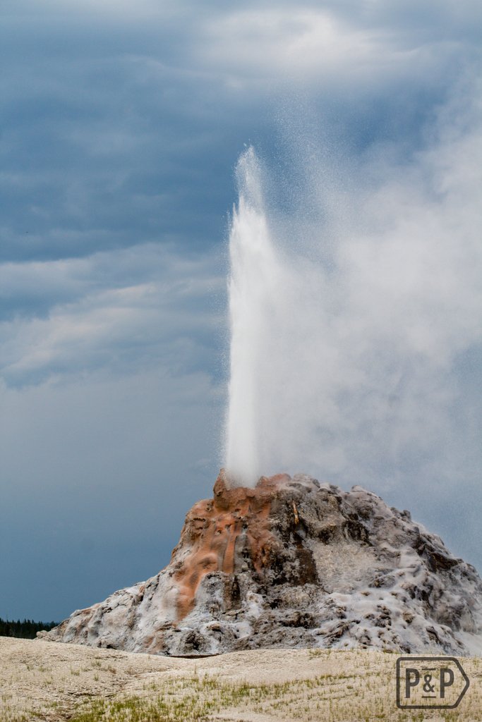 White Dome Geyser with a storm brewing at Yellowstone National Park. ⠀ ⠀